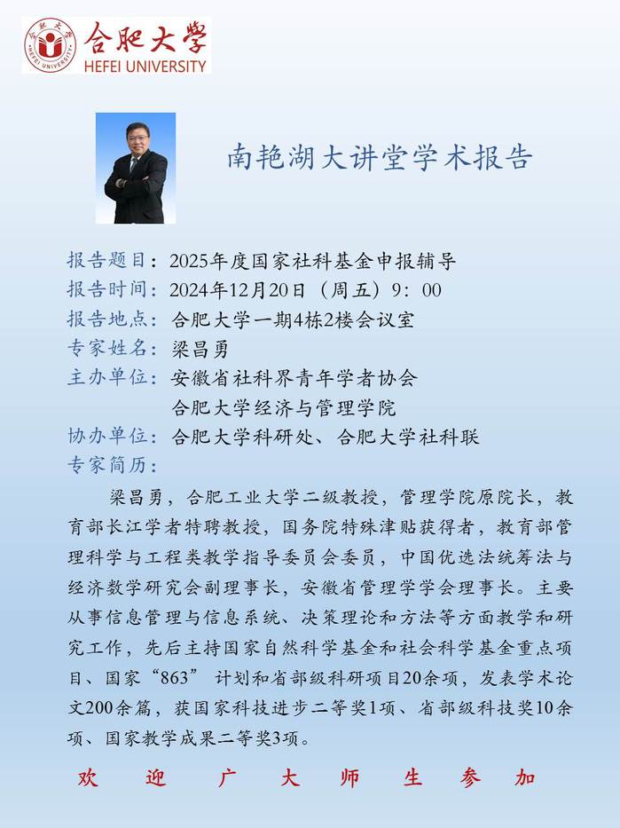 【南艷湖大講堂】2025年度國家社科基金申報輔導(dǎo)