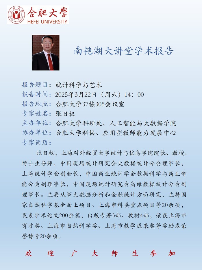 【南艷湖大講堂】統(tǒng)計科學(xué)與藝術(shù)