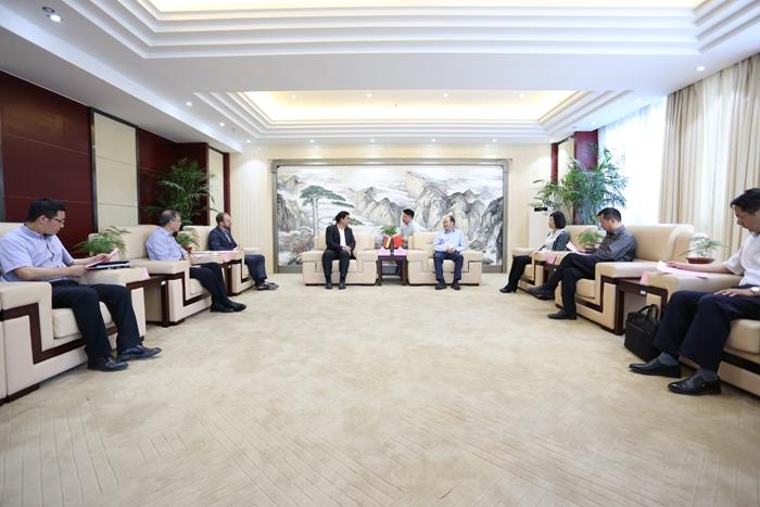 5月23日,省委教育工委書記錢桂侖、省教育廳高等教育處處長梁祥君等領(lǐng)導(dǎo)來校調(diào)研中德教育合作示范基地建設(shè)情況。