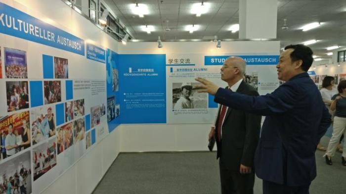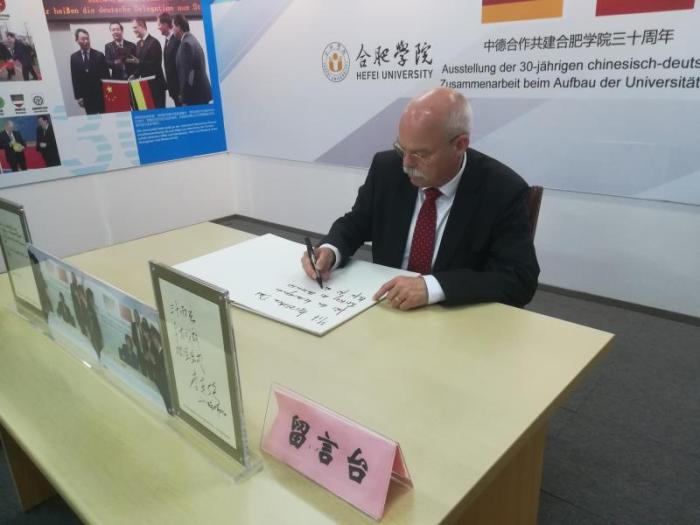 隨后,雙方參觀了中德合作共建合肥學院成果展。蔡敬民、王其東為葛策博士一行詳細講解。蔡敬民表示,合肥學院是一所在“改革中誕生、開放中成長、創(chuàng)新中發(fā)展”的地方本科院校,早在2003年就提出“地方性、應用型、國際化”的辦學定位,三十多年來通過借鑒德國應用科學大學辦學經(jīng)驗,結合中國實踐構建應用型人才培養(yǎng)體系,促進自身發(fā)展的同時,也示范引領了眾多國內地方高校的轉型發(fā)展。