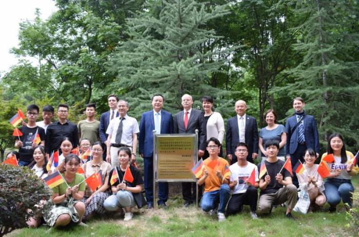 蔡敬民、王其東與葛策博士等人共同栽種了一棵中德友誼樹并為其澆灌、揭匾,在場嘉賓與同學們共同合影留念,共慶合肥學院中德友誼林再添新株。