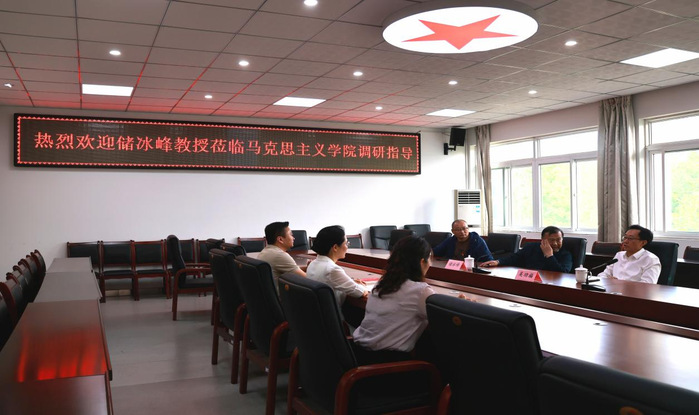 報告會結(jié)束后,吳功福陪同儲冰峰教授前往馬克思主義學(xué)院開展調(diào)研座談。座談會上,儲冰峰圍繞課程創(chuàng)新、課題研究、師資培養(yǎng)及科研合作等方面,為學(xué)院發(fā)展提出了一系列建設(shè)性建議。吳功福表示,要深入學(xué)習(xí)貫徹習(xí)近平總書記對學(xué)校思政課建設(shè)重要指示精神,加強校內(nèi)外思政資源整合,構(gòu)建思政大課堂,創(chuàng)新推動思政課建設(shè)內(nèi)涵式發(fā)展,把道理講深講透講活,不斷提高思政課的針對性和吸引力。馬克思主義學(xué)院負責(zé)人表示,將以此次交流為契機,充分吸收專家意見,持續(xù)深化教學(xué)改革,提升科研創(chuàng)新能力,切實將黨史學(xué)習(xí)教育成果轉(zhuǎn)化為育人實效,為推動學(xué)校高質(zhì)量發(fā)展、培育擔(dān)當(dāng)民族復(fù)興大任的時代新人貢獻力量。