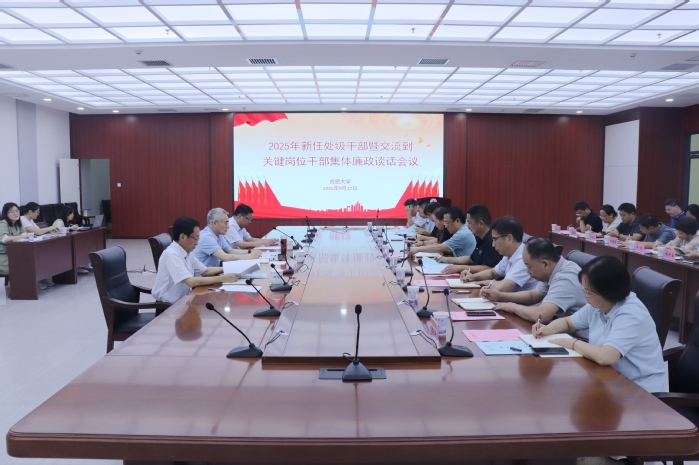 9月12日,我校召開(kāi)2025年新任處級(jí)干部暨交流到關(guān)鍵崗位干部集體廉政談話會(huì)議。校黨委書(shū)記鄔平川,黨委副書(shū)記周飛,黨委委員、紀(jì)委書(shū)記、省監(jiān)委駐合肥大學(xué)監(jiān)察專員吳功福出席會(huì)議,會(huì)議由周飛主持。學(xué)校新任處級(jí)干部及交流到關(guān)鍵崗位干部、紀(jì)委辦負(fù)責(zé)人和組織部負(fù)責(zé)人參加會(huì)議。