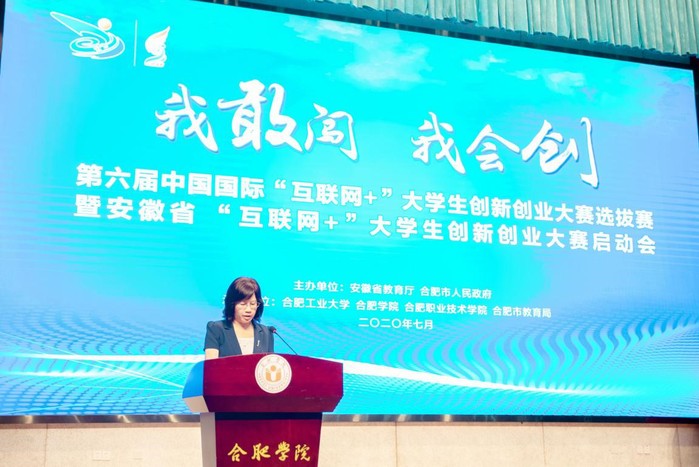 本屆大賽以“我敢闖,我會創(chuàng)”為主題,由安徽省教育廳與合肥市人民政府聯(lián)合主辦,合肥工業(yè)大學(xué)、合肥學(xué)院、合肥職業(yè)技術(shù)學(xué)院、合肥市教育局共同承辦。省教育廳副廳長儲常連、合肥市人民政府副秘書長吳昌文、合肥學(xué)院黨委書記王其東、合肥工業(yè)大學(xué)黨委副書記陳剛、合肥職業(yè)技術(shù)學(xué)院黨委書記羅兆好、合肥市教育局二級調(diào)研員唐文水出席啟動會,會議由我校校長吳春梅主持。