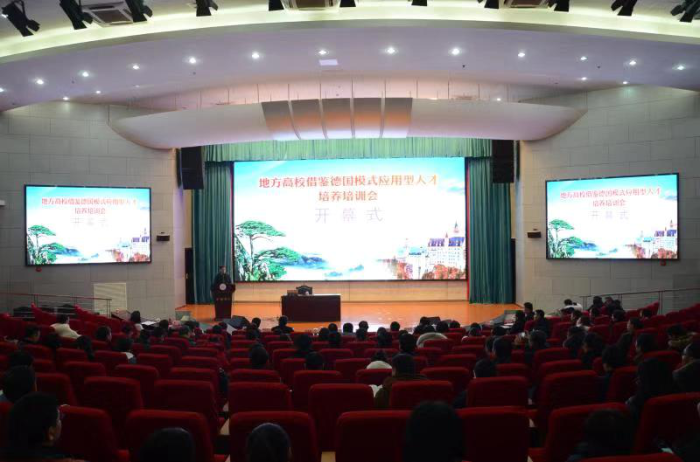 1月9日上午,與會(huì)代表在參觀中德教育合作三十周年展后,在圖書館學(xué)術(shù)報(bào)告廳參加了培訓(xùn)會(huì)開幕式。我校各二級(jí)學(xué)院教學(xué)院長、專業(yè)負(fù)責(zé)人及新進(jìn)教師三百余人到場聆聽。