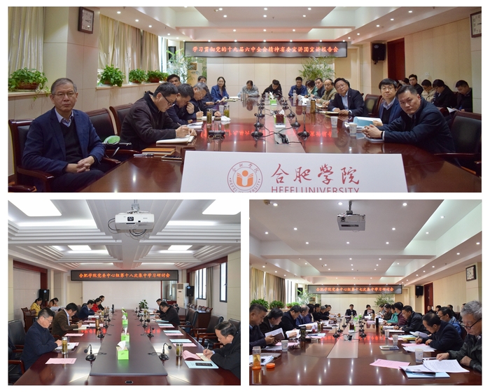 合肥學院黨委提高政治站位,加強頂層設計,科學謀劃、扎實推進,將學習宣傳貫徹黨的十九屆六中全會精神作為當前和今后一個時期的一項重大政治任務,推動全會精神在合院校園里落地生根、花開滿園。