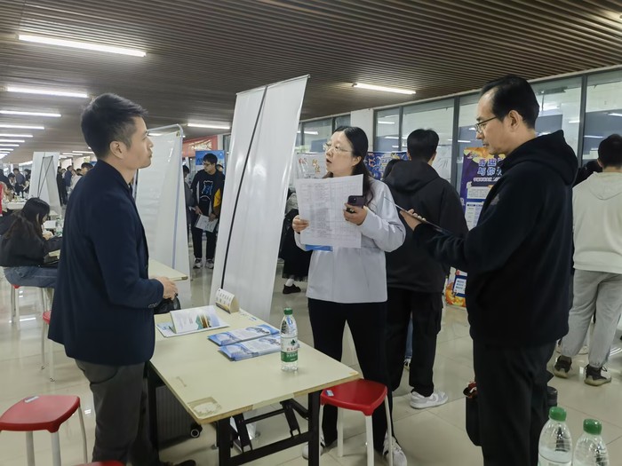 招聘會(huì)期間,校友辦主任劉金平、崔國慶等一行來現(xiàn)場(chǎng)進(jìn)行就業(yè)調(diào)研,積極與眾多校友企業(yè)展開面對(duì)面交流,希望校友企業(yè)加強(qiáng)與學(xué)校之間的合作交流,共同培養(yǎng)更多符合市場(chǎng)需求的高素質(zhì)人才。