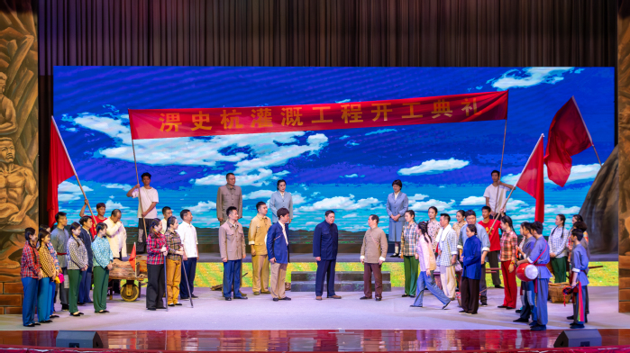《情系淠史杭》以廬劇形式,生動講述了淠史杭工程建設(shè)期間,英雄的皖西兒女不畏艱難險阻、投身治水建設(shè)的感人故事。其中,“決戰(zhàn)龍河口”部分更是將全劇推向高潮,展現(xiàn)了淠史杭人“人在壩在”“為了子孫萬代,不惜犧牲生命”的崇高情懷,近兩個小時的演出贏得了潮水般的掌聲。