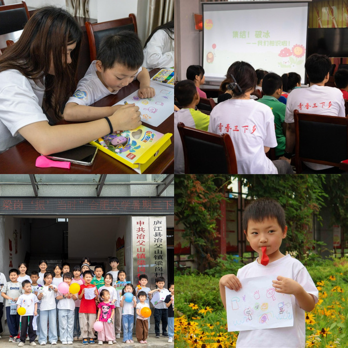 實(shí)踐團(tuán)隊(duì)開(kāi)設(shè)“你眼中的家鄉(xiāng)”繪畫(huà)課,引導(dǎo)孩子們描繪家鄉(xiāng)的秀麗山水與獨(dú)特的風(fēng)土人情,在藝術(shù)創(chuàng)作中深化對(duì)鄉(xiāng)土文化的認(rèn)知與情感認(rèn)同。團(tuán)隊(duì)成員巧妙融合傳統(tǒng)元素與現(xiàn)代韻律,帶領(lǐng)孩子們?cè)谖璧钢畜w驗(yàn)藝術(shù)的魅力。