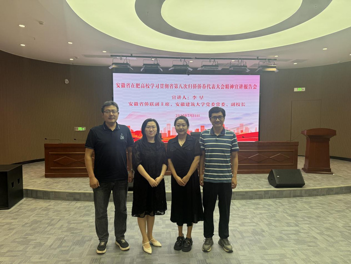 為深入學(xué)習(xí)貫徹安徽省第八次歸僑僑眷代表大會(huì)精神,進(jìn)一步凝聚僑心、匯聚僑智、發(fā)揮僑力,7月31日上午,安徽省僑聯(lián)在合肥組織召開安徽省在肥高校學(xué)習(xí)貫徹省第八次歸僑僑眷代表大會(huì)精神宣講報(bào)告會(huì)。本次報(bào)告會(huì)由安徽省僑聯(lián)副主席、安徽建筑大學(xué)黨委常委、副校長李早宣講。合肥大學(xué)僑聯(lián)積極響應(yīng),組織省僑聯(lián)委員、校僑聯(lián)主席趙歡,校僑聯(lián)副主席楊承剛,校僑聯(lián)秘書長張星,僑聯(lián)會(huì)員代表李殿云等參加會(huì)議。