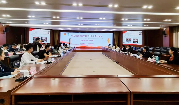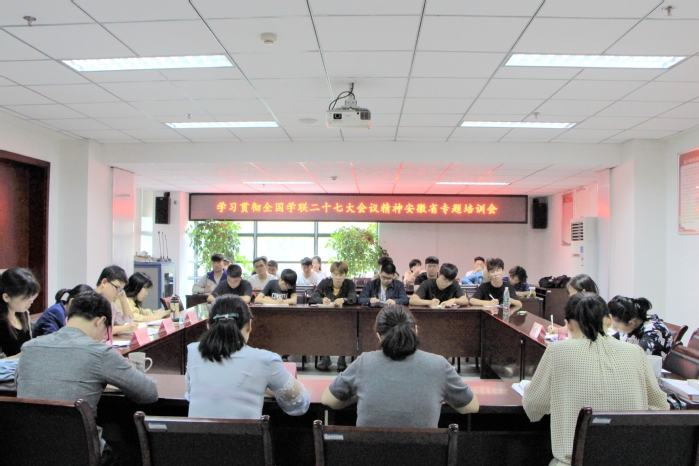 為深入學(xué)習(xí)貫徹習(xí)近平總書記賀信和黨中央致詞精神,全面貫徹落實全國學(xué)聯(lián)二十七大提出的工作部署和任務(wù),9月25日,團省委、省學(xué)聯(lián)舉辦學(xué)習(xí)貫徹全國學(xué)聯(lián)二十七大會議精神安徽省專題培訓(xùn)班,我校團委組織各學(xué)院師生團干參與培訓(xùn)并座談交流。