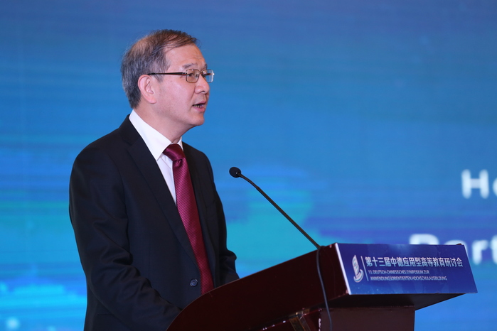 開幕式后,在大會主旨報告環(huán)節(jié),五位專家結(jié)合自身研究領(lǐng)域分享了對應用型高等教育的思考。德國馬格德保應用科學大學副校長丁永健圍繞“新形勢下中德高校合作前景以及德國應用科學大學的角色”展開介紹。他表示,國際關(guān)系在很大程度上取決于經(jīng)濟合作,中德雙方在經(jīng)濟領(lǐng)域具有多方面、多領(lǐng)域的合作,這也為中德高校教育合作提供了堅實的基礎(chǔ)。在未來,中德高校間的合作交流會持續(xù)進行、不斷深化,共同推動中德教育的發(fā)展進步、合作共贏。