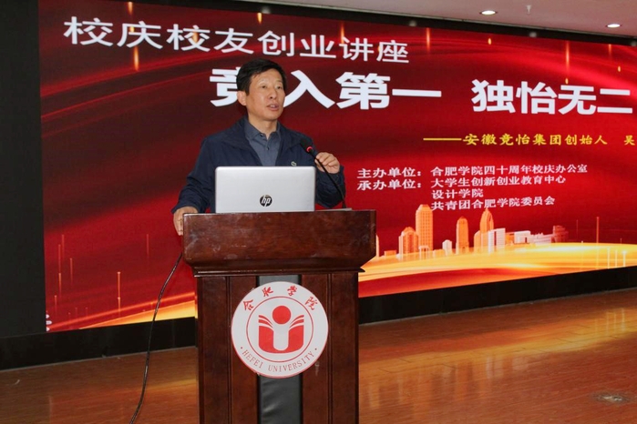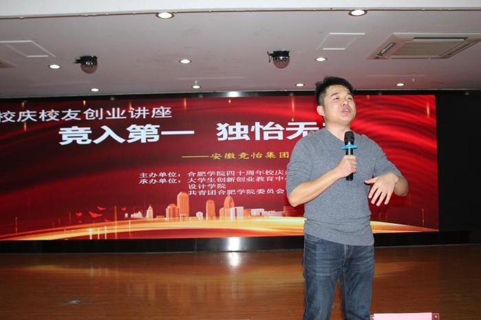 11月26日下午,由大學(xué)生創(chuàng)新創(chuàng)業(yè)教育中心、設(shè)計(jì)學(xué)院和共青團(tuán)合肥學(xué)院委員會(huì)共同舉辦的校慶校友第三期創(chuàng)業(yè)講座在大學(xué)生活動(dòng)中心舉行。2013屆優(yōu)秀畢業(yè)校友吳銳做了題為《競(jìng)?cè)氲谝?獨(dú)怡無二》的創(chuàng)業(yè)報(bào)告。