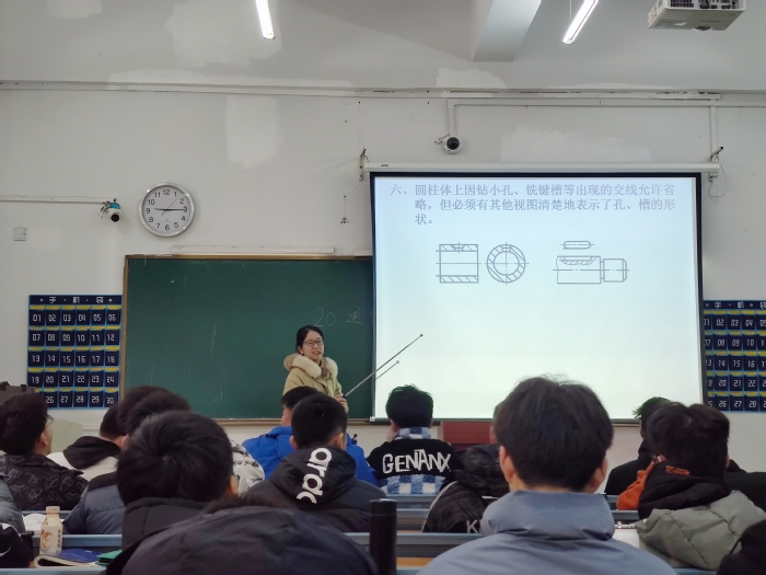 “每天最快樂的事情就是上課?!辈稍L伊始,劉丹萍老師親切地笑著說道。劉老師所教授的《機(jī)械產(chǎn)品表達(dá)》課程,旨在培養(yǎng)學(xué)生掌握繪制和閱讀工程圖樣的基礎(chǔ)技能,而想要學(xué)好其中的難點(diǎn),繞不開投影法。投影是什么?大到航空航天制造、小到螺母配件生產(chǎn)都與其密切相關(guān)。將三維結(jié)構(gòu)展現(xiàn)在二維圖紙上,需要抓住每個(gè)視圖中的主要特征并將復(fù)雜的線條直觀化,這對(duì)空間想象能力要求極高。和大多數(shù)工科課程一樣,起初同學(xué)們并沒感受到投影法與他們習(xí)以為常的思政課有什么關(guān)系,甚至還因?yàn)閮?nèi)容抽象產(chǎn)生了畏難情緒。