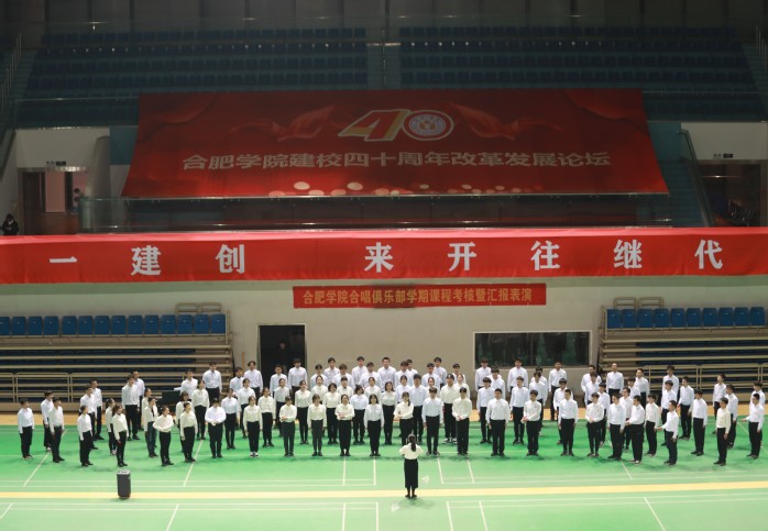 1月7日晚,我校體育館主館燈火通明,合肥學(xué)院合唱俱樂部學(xué)期課程考核正在進(jìn)行,11支二級學(xué)院合唱團(tuán)、近千名合唱隊(duì)員整齊排列,等待上場。擔(dān)任本次合唱俱樂部會(huì)員考核的考官分別是公共體育與藝術(shù)教學(xué)部陳小劍、畢琪琦、李靜雯、張達(dá)、楊瑩彥、孫樂欣等七位老師。這是我校以匯報(bào)表演形式對各學(xué)院合唱俱樂部會(huì)員進(jìn)行學(xué)期考核的一次嘗試。