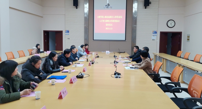 在新站高新區(qū)管委會(huì)會(huì)議室,我校與新站高新區(qū)人事勞動(dòng)局舉行了人才智力戰(zhàn)略合作座談和簽約儀式。新站高新區(qū)人事勞動(dòng)局副局長(zhǎng)王斌,人力資源服務(wù)中心主任李慧潔、副主任彭俊參會(huì)。會(huì)議由王斌主持。