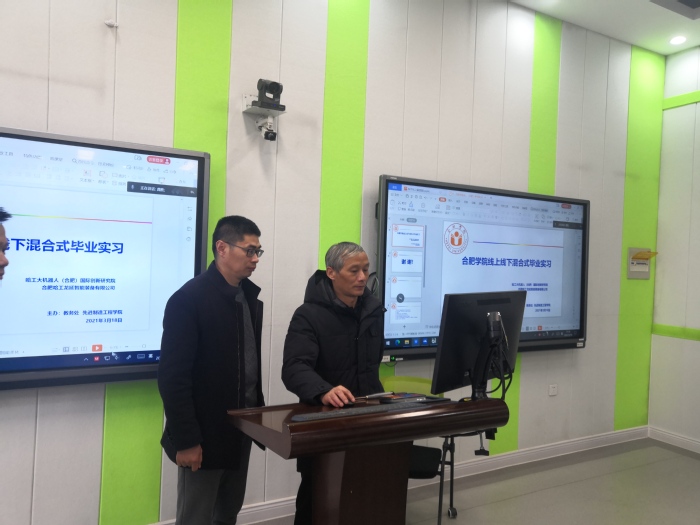3月18日,教務(wù)處與先進制造工程學院聯(lián)合開展了線上線下混合式畢業(yè)實習試點探索?;顒佑山虅?wù)處副處長儲忠、副處長王仁寶、先進制造工程學院副院長秦強全程策劃協(xié)調(diào)。在我校校外實習基地哈工大機器人(合肥)國際創(chuàng)新研究院、合肥哈工龍延智能裝備有限公司、合肥哈工熱氣球數(shù)字科技有限公司的大力支持下,在高級工程師梅曉輝等人的協(xié)調(diào)下,活動取得了圓滿成功。