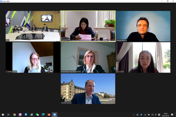 吳春梅首先對(duì)三方成功召開(kāi)線上視頻會(huì)議表示祝賀,她指出中德對(duì)話論壇是中德兩國(guó)政府共同構(gòu)建的交流平臺(tái),今天的視頻會(huì)議是落實(shí)中德對(duì)話論壇的共識(shí),三方擬共同建設(shè)中德開(kāi)放在線學(xué)習(xí)平臺(tái),實(shí)現(xiàn)中德學(xué)位互授聯(lián)授、高校教師培訓(xùn)、雙元制線上線下融合培訓(xùn)。作為中德開(kāi)放在線學(xué)習(xí)平臺(tái)的主建設(shè)方,袁雯向大家介紹了上海開(kāi)放大學(xué)的辦學(xué)歷史與培養(yǎng)目標(biāo),她強(qiáng)調(diào)中德開(kāi)放在線學(xué)習(xí)平臺(tái)是一個(gè)開(kāi)放的平臺(tái),希望有更多的國(guó)家、學(xué)校、學(xué)者加入,本次三方協(xié)議的建立正是一次良機(jī)。Andreas Bertram表示很高興能夠和我校再次合作,同時(shí),他對(duì)針對(duì)備忘錄中四個(gè)方面的內(nèi)容提出建設(shè)性意見(jiàn),他認(rèn)為德方在雙元制教學(xué)方面已有豐富的經(jīng)驗(yàn),可以將數(shù)字化概念與線上線下平臺(tái)進(jìn)行整合,未來(lái)希望三方可以在線上平臺(tái)錄制視頻等方面共同制定標(biāo)準(zhǔn),以保證教學(xué)質(zhì)量。