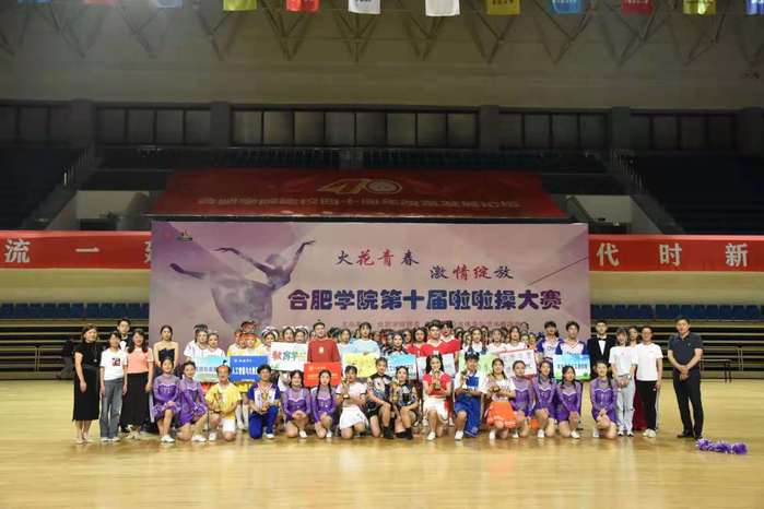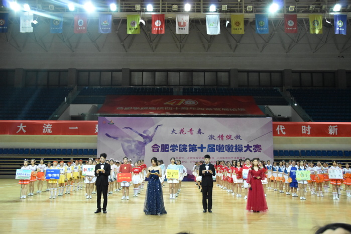 為豐富校園文化,不斷提高同學(xué)們的綜合素質(zhì),營造和諧向上的校園文化氛圍,2021年6月6日,由合肥學(xué)院團(tuán)委、學(xué)生處、公共體育與藝術(shù)教學(xué)部聯(lián)合舉辦的合肥學(xué)院第十屆啦啦操大賽于我校體育館舉辦。合肥學(xué)院公共體育與藝術(shù)教學(xué)部主任許大慶、健美操俱樂部負(fù)責(zé)人周瑞英、大眾操教練周蘊(yùn),安徽農(nóng)業(yè)大學(xué)體育部教師代表羅偉偉、朱妍妍以及安徽審計(jì)職業(yè)學(xué)院教師李影擔(dān)任評委。