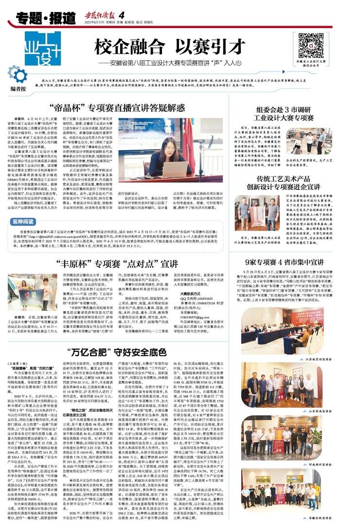 據(jù)悉,安徽省第八屆工業(yè)設(shè)計(jì)大賽“帝晶杯”專項(xiàng)賽是經(jīng)安徽省經(jīng)濟(jì)和信息化廳批準(zhǔn),由安徽帝晶光電科技有限公司主辦,合肥學(xué)院設(shè)計(jì)學(xué)院、安徽欣文創(chuàng)意設(shè)計(jì)有限公司承辦的液晶顯示模組展示裝置類工業(yè)設(shè)計(jì)比賽。6月10日上午,該賽事線上直播宣講會在合肥工業(yè)設(shè)計(jì)城舉行,設(shè)計(jì)學(xué)院副院長彭松代表大賽承辦方作宣講致辭,他鼓勵設(shè)計(jì)師踴躍報(bào)名,把握與全球頂尖產(chǎn)業(yè)制造商親密接觸的契機(jī)。設(shè)計(jì)學(xué)院教師王雪瑜就參賽對象及條件、作品設(shè)計(jì)內(nèi)容及要求、作品提交要求及途徑、獎項(xiàng)設(shè)置、賽程安排等大賽作品征集細(xì)則進(jìn)行了詳細(xì)闡述。專項(xiàng)賽宣講活動得到《安徽經(jīng)濟(jì)報(bào)》??瘓?bào)道,目前投稿征集已進(jìn)入“白熱化”階段。