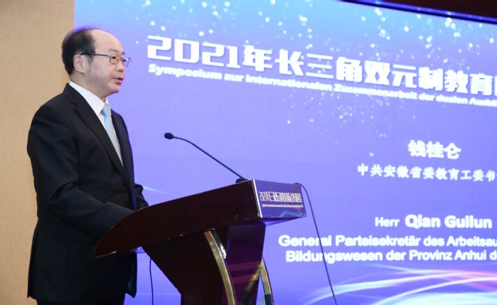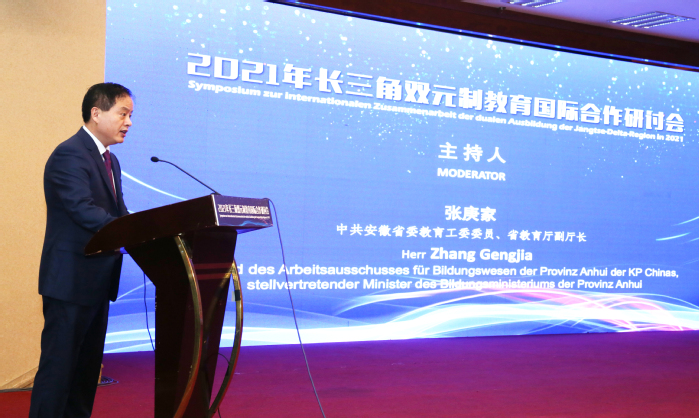 長(zhǎng)三角雙元制教育國(guó)際合作研討會(huì)的召開(kāi),將進(jìn)一步發(fā)揮安徽在中德合作、雙元制協(xié)同培養(yǎng)人才領(lǐng)域的先行優(yōu)勢(shì)和先進(jìn)經(jīng)驗(yàn),整合校企合作培養(yǎng)人才在應(yīng)用型高等教育、高等及中等職業(yè)教育領(lǐng)域的資源,推進(jìn)人才鏈、產(chǎn)業(yè)鏈、教育鏈、創(chuàng)新鏈有機(jī)統(tǒng)一和長(zhǎng)三角一體化發(fā)展戰(zhàn)略,服務(wù)新階段現(xiàn)代化美好安徽建設(shè)。合肥學(xué)院將抓住發(fā)展機(jī)遇,持續(xù)深化雙元制高等教育改革,大力推進(jìn)專(zhuān)業(yè)、就業(yè)、產(chǎn)業(yè)“三業(yè)一體”,為省市高質(zhì)量發(fā)展持續(xù)輸送高素質(zhì)人才。