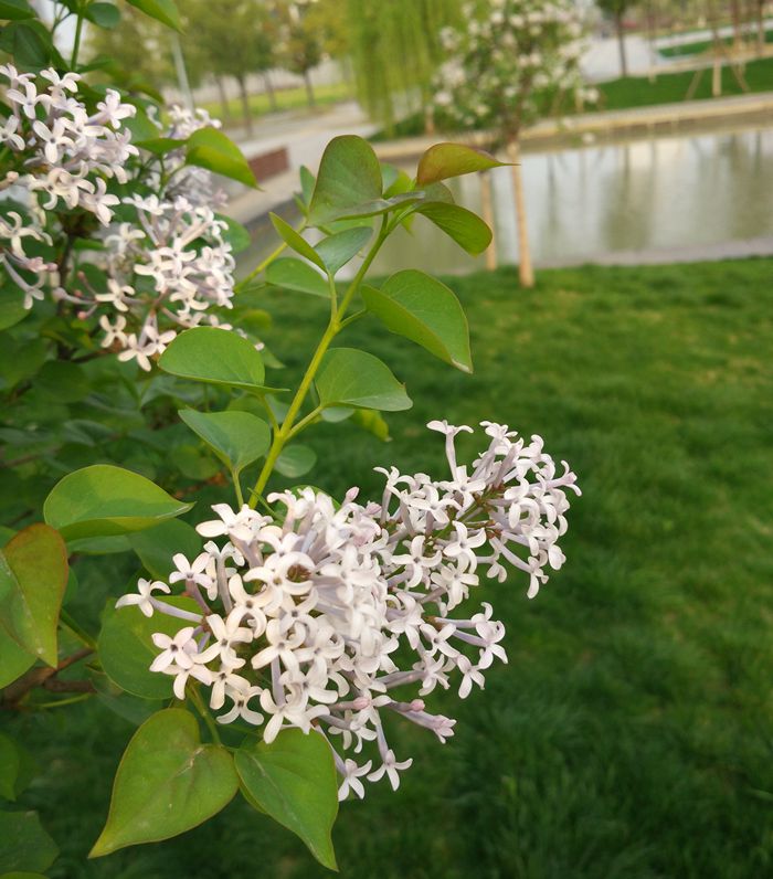 看罷端莊淡雅的一區(qū)風(fēng)景,且步入明媚活潑的二區(qū)校園。剛進(jìn)校門(mén),灌木叢中紅葉石楠的鮮紅嫩芽便染紅了眼際。如鋪滿了紅毯般熱烈,炫耀著無(wú)限的活力與熱情。從旁走過(guò)的同學(xué)們臉上也被反射出淡淡的紅暈。沿著水邊叢叢翠竹,依著聳立挺拔的法梧,繞過(guò)體育館,便往圖書(shū)館來(lái)。成排柳枝垂成簾幕,掩映著一池春光。踏上湖邊的木板橋,撥開(kāi)柳叢,便有波光耀眼,櫻花乍現(xiàn)。等閑識(shí)得東風(fēng)面,在熠熠水波中,在點(diǎn)點(diǎn)落英中,在飄飄柳絮中,在少女揚(yáng)起的眉梢嘴角中……“喧鳥(niǎo)覆春洲,雜英滿芳甸。”圍坐在這綠地上談天說(shuō)地的同學(xué)們不約而同地聯(lián)想到這詩(shī)句,寫(xiě)得真是一點(diǎn)兒也不差。綠地上雜著粉色的花瓣,躺在草地上沐浴春陽(yáng)的學(xué)子們身上也染著這淡淡的芬芳,仿佛被梅花落在眉心的壽陽(yáng)公主,半是憐春半惱春吧。