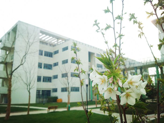 走入一區(qū)校園,銀杏枝頭的雀兒便歡歌相迎??秩瞬恢合?,一曲迎春與君聽(tīng)。兩旁高枝任它們追逐相嬉,一跳一躍間便譜出樂(lè)章無(wú)限。令人一見(jiàn)就恨不得身添雙翼,也化作一只鳥(niǎo)兒,飛上枝頭去看那初生的新芽,為它歌一首生的贊歌!由杏樹(shù)指路,鳥(niǎo)雀相引,讓人在滿目風(fēng)光中忘了腳下已走過(guò)了幾步路。繞過(guò)行知樓,映入眼中的,是一湖春水平如鑒,九曲小橋蜿如龍。你看那三三兩兩結(jié)伴同游的學(xué)生們,輕移蓮步,怕驚了碧水;慢吐鼻息,恐散卻游魚(yú)。柳絮紛紛,點(diǎn)在湖邊青苔;亭閣隱隱,映入水中綠樹(shù)。幾位留學(xué)生也趁著煦日暖陽(yáng),在這頗具中國(guó)古風(fēng)的小亭中談笑風(fēng)生。石橋分水色,照影團(tuán)圓中。水色隨春變,入畫(huà)意無(wú)窮。藝術(shù)樓的琴音與歌聲隨風(fēng)飄來(lái),舞動(dòng)了垂柳,陶醉了櫻花,喚醒了羽衣甘藍(lán)。誰(shuí)不愛(ài)這春動(dòng)校園,一片盎然?