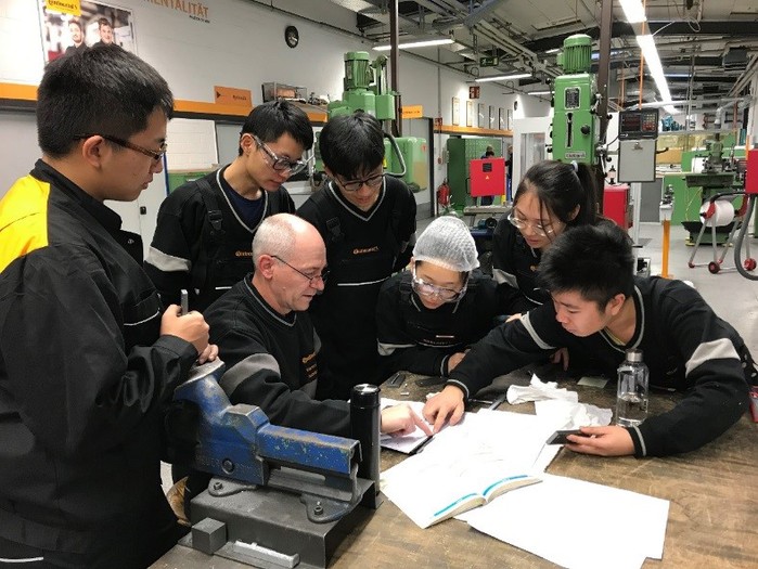 雙元制大陸班是我校2016年9月與德國埃姆登-里爾應(yīng)用科學(xué)大學(xué)、德國大陸集團(tuán)輪胎事業(yè)部三方共同組建的特色專業(yè),旨在探索雙元制高等教育在中國的本土化改革和發(fā)展。在學(xué)生招生、課堂教學(xué)、實踐教學(xué)、國際化能力培養(yǎng)等方面,雙元制大陸班走出了一條特色之路,也是真正意義上中國第一個雙元制高等教育專業(yè)。