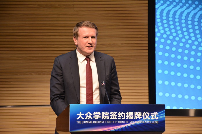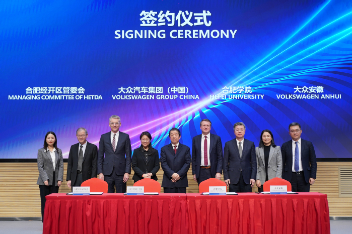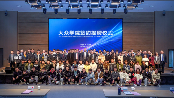 為推動產教深度融合、校企協(xié)同育人,打造“雙元制”高等教育合作范例,2月20日,大眾學院簽約揭牌儀式在合肥市中德合作創(chuàng)新園隆重舉辦。大眾汽車集團(中國)執(zhí)行副總裁傅勤彥(Jens Pfitzinger),大眾汽車(安徽)有限公司首席執(zhí)行官葛皖鏑(Erwin Gabardi),合肥學院黨委書記王其東,合肥市委常委路軍,省委教育工委委員、省教育廳副廳長儲常連出席儀式并致辭。儀式由合肥學院院長吳春梅主持。