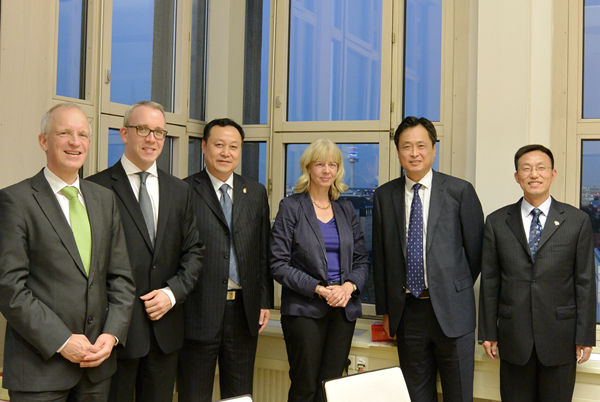 代表團(tuán)一行在德國(guó)期間還拜訪了中國(guó)駐德國(guó)使館教育處,駐德教育處公使銜參贊董琦教授聽取蔡敬民對(duì)我校國(guó)際合作和應(yīng)用型改革情況,以及針對(duì)中德教育合作示范基地與基金的建設(shè)方案的匯報(bào)。在德期間,蔡敬民還專程訪問了漢諾威應(yīng)用科學(xué)大學(xué),拜訪下薩克森州科學(xué)文化部。