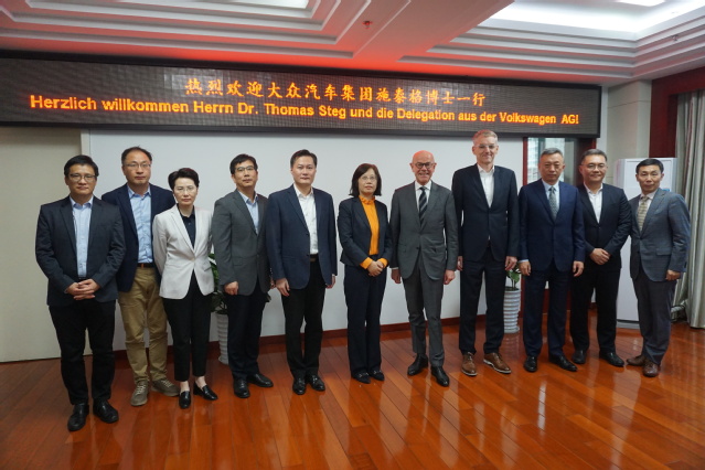 Am Nachmittag des 10. Oktober besuchte eine Delegation unter der Leitung von Dr. Thomas Steg, dem Executive Vice President und Leiter der Au?enbeziehungen der Volkswagen AG, die Hefei-Universit?t. Die Delegation führte eingehende Untersuchung zur chinesisch-deutschen Zusammenarbeit der Hefei-Universit?t. durch und tauschte die Erfahrugnen über den Aufbau des Volkswagen-Institut aus. Der Parteisekret?r Wang Qidong empfing die Delegation der Volkswagen AG, w?hrend die Pr?sidentin Wu Chunmei Gespr?che mit den Vertretern der Volkswagen AG führte.