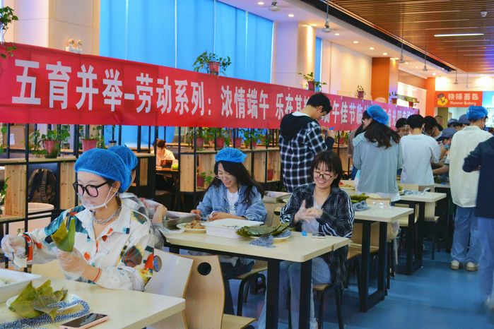 為扎實(shí)推進(jìn)勞動教育,弘揚(yáng)優(yōu)秀傳統(tǒng)文化,6月5日上午,學(xué)生處、團(tuán)委、后勤集團(tuán)在第二食堂聯(lián)合舉辦端午主題勞動教育實(shí)踐活動。