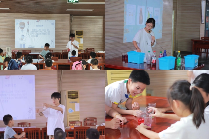活動中,志愿者們讓小朋友自主參與科學(xué)實驗,探究實驗原理,在動手的過程中體驗科學(xué)的奧秘與樂趣,營造崇尚科學(xué)、推動創(chuàng)新的良好氛圍。實驗課上,志愿者通過“自制簡易凈水器”,讓小朋友們理解水凈化的基本原理,掌握簡單的凈水技術(shù);“紫甘藍(lán)變色”實驗將紫甘藍(lán)水放入不同溶液中,觀察紫甘藍(lán)水變色的現(xiàn)象;“水的浮力”課程中,飄在水上的回形針揭示了水的張力內(nèi)在原理,引發(fā)了小朋友們對實驗和科學(xué)的好奇心與興趣。一系列實驗,讓小朋友們連連稱贊,教室里一片歡聲笑語。