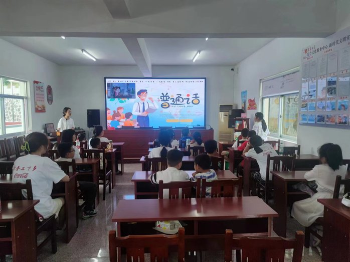 為豐富社區(qū)兒童暑期生活,團(tuán)隊(duì)成員去往多個(gè)社區(qū),搭建“七彩課堂”教育平臺(tái)。7月17日下午,來(lái)蘇社區(qū)內(nèi),科普組的同學(xué)發(fā)揮師范類(lèi)專(zhuān)業(yè)的優(yōu)勢(shì),開(kāi)展推廣普通話(huà)的公益課堂。同學(xué)們通過(guò)互動(dòng)式教學(xué)和有趣的語(yǔ)言游戲,讓小朋友們?cè)谳p松愉悅的氛圍中了解普通話(huà)的重要性。