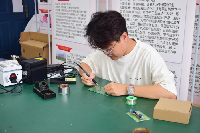 在38棟506創(chuàng)新實(shí)驗(yàn)室,2022級電子信息工程專業(yè)學(xué)生孫曉偉正全力備戰(zhàn)兩大賽事:全國大學(xué)生電子設(shè)計(jì)競賽(安徽賽區(qū))及中國國際大學(xué)生創(chuàng)新大賽省賽。在鐘倫鎖老師的悉心指導(dǎo)下,他與團(tuán)隊(duì)其他14人一同打磨名為“池鳴天下——新能源電池綜合服務(wù)平臺”的項(xiàng)目,目前,該項(xiàng)目已榮獲校賽金獎(jiǎng),省賽計(jì)劃書也已順利提交。此外,在電設(shè)競賽上,他與兩位隊(duì)友在李翠花老師的指導(dǎo)下并肩作戰(zhàn),自7月5日起,由李老師帶領(lǐng)進(jìn)行三周密集培訓(xùn),旨在提升競賽實(shí)力。作為雙賽領(lǐng)隊(duì),孫曉偉深感責(zé)任重大,他自我鞭策:“我將全身心投入培訓(xùn),不斷精進(jìn),直至賽事圓滿落幕?!?/p>