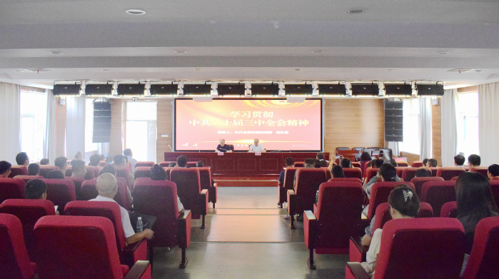 8月30日,學(xué)習(xí)貫徹黨的二十屆三中全會精神“舉旗幟·送理論”示范宣講活動在我校一期六棟報告廳舉辦。市委統(tǒng)戰(zhàn)部副部長喻禮勝作宣講報告。我校黨委委員、宣傳統(tǒng)戰(zhàn)部部長賈峰,全市教育系統(tǒng)黨外知識分子和民辦高職院校黨組織書記、黨務(wù)工作者共70余人參加。