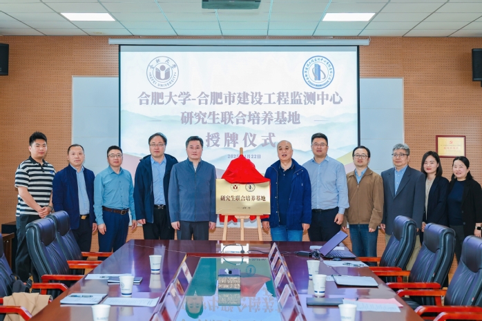 4月22日,黨委委員、副校長(zhǎng)王曉峰率隊(duì)赴合肥市建設(shè)工程監(jiān)測(cè)中心有限責(zé)任公司參加交流座談會(huì)暨研究生聯(lián)合培養(yǎng)基地授牌儀式,研究生處、城市建設(shè)與交通學(xué)院主要負(fù)責(zé)人陪同。合肥市建設(shè)投資控股(集團(tuán))有限公司黨委書(shū)記、董事長(zhǎng)雍鳳山,合肥市建設(shè)投資控股(集團(tuán))有限公司總工程師、合肥市建設(shè)工程監(jiān)測(cè)中心有限責(zé)任公司董事長(zhǎng)傅劍及相關(guān)負(fù)責(zé)人參加。