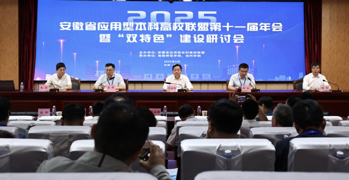 5月29日,安徽省應(yīng)用型本科高校聯(lián)盟第十一屆年會暨“雙特色”建設(shè)研討會召開,我校作為聯(lián)盟常任主席單位組織召開會議。中共安徽省委教育工委委員、安徽省教育廳副廳長劉業(yè)勛,我校黨委副書記、校長任永,池州學(xué)院黨委書記王峰,淮南師范學(xué)院校長程剛等出席會議。省教育廳高教處負(fù)責(zé)同志,聯(lián)盟及相關(guān)高校分管校領(lǐng)導(dǎo)、教務(wù)處長、學(xué)科負(fù)責(zé)人等90余人參加會議。