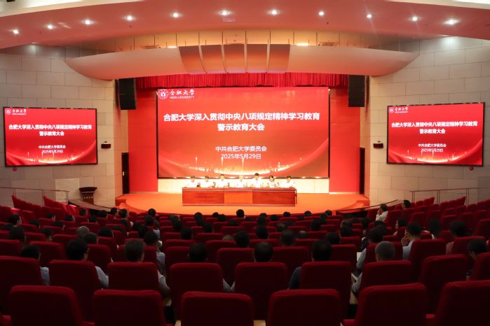 5月29日,合肥大學(xué)召開(kāi)警示教育大會(huì)。校黨委書(shū)記鄔平川主持并講話。黨委副書(shū)記、校長(zhǎng)任永,黨委副書(shū)記周飛,副校長(zhǎng)陳秀,黨委委員、副校長(zhǎng)白義香,黨委委員、紀(jì)委書(shū)記、監(jiān)察專員吳功福,黨委委員、副校長(zhǎng)王曉峰出席會(huì)議。全校副處級(jí)以上干部,新提拔干部、年輕干部和關(guān)鍵崗位干部參加會(huì)議。