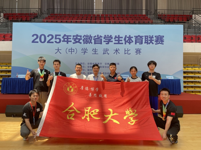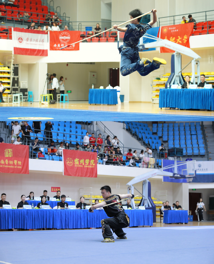 6月18日至23日,2025年安徽省體育聯(lián)賽大學(xué)生武術(shù)比賽在宿州學(xué)院舉行。全省44個代表隊、590名運動員參加比賽,我校武術(shù)隊在毛獻亮、徐軍老師的指導(dǎo)下,參加了長拳、南棍、南拳、對練等7個項目的比賽,獲得2金2銀的優(yōu)異成績。其中,孫晨榮獲男子甲組自選南棍冠軍,徐家豪奪得男子甲組自選長拳冠軍,孫晨在男子甲組南拳獲得亞軍,徐家豪、孫晨、王星墨組成的對練隊伍在甲組對練項目中摘得銀牌。