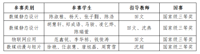 近日,2025年(第18屆)中國大學(xué)生計算機設(shè)計大賽舉辦。我校學(xué)子在“數(shù)媒靜態(tài)設(shè)計”“數(shù)媒動漫與短片”及“物聯(lián)網(wǎng)應(yīng)用”三大賽道中表現(xiàn)優(yōu)異,共獲全國三等獎4項。