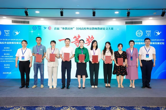 8月7日至10日,“首屆中國(guó)高校外語(yǔ)教師發(fā)展論壇”暨首屆“外教社杯”中國(guó)高校外語(yǔ)教師教研論文大賽頒獎(jiǎng)典禮舉辦,外國(guó)語(yǔ)學(xué)院教師劉倩男的論文《產(chǎn)出導(dǎo)向法視角下教師支架在師生合作評(píng)價(jià)模式中的作用機(jī)制研究》獲一等獎(jiǎng)。