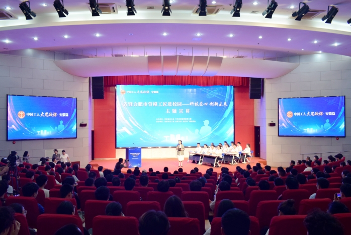 九月的合肥,秋陽正好,科創(chuàng)涌動(dòng);菁菁校園,星光匯聚,匠心閃耀。9月17日下午,由安徽省總工會(huì)、中共安徽省委教育工委主辦,合肥市總工會(huì)、合肥大學(xué)、合肥市廣播電視臺(tái)共同承辦的“中國(guó)工人大思政課?安徽篇——省暨合肥市‘勞模工匠進(jìn)校園’”主題宣講活動(dòng)在合肥大學(xué)隆重舉行。安徽省總工會(huì)黨組成員、副主席朱穎,安徽省委教育工委副書記范奇,合肥市總工會(huì)黨組書記、副主席宣麗玲,合肥廣播電視臺(tái)臺(tái)長(zhǎng)吳紅,合肥大學(xué)黨委副書記周飛出席。本次活動(dòng)以“科技匠心 創(chuàng)新未來”為主題,為青年學(xué)子帶來了一場(chǎng)兼具思想高度與創(chuàng)新溫度的精神盛宴。