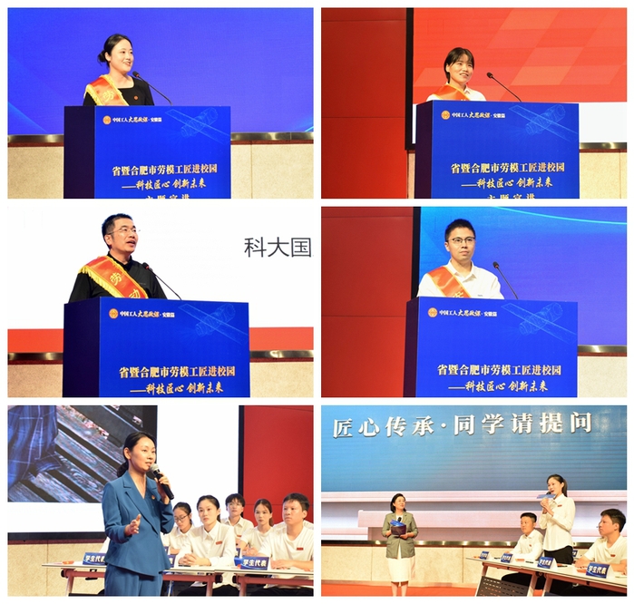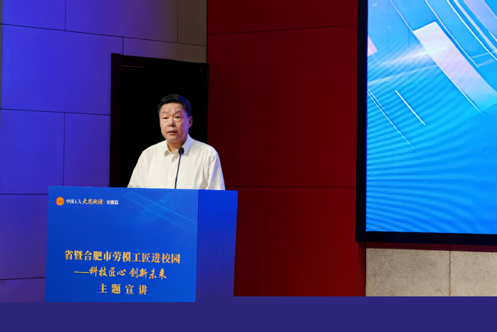 在活動(dòng)現(xiàn)場(chǎng),來自量子科技、芯片制造、軍工生產(chǎn)等領(lǐng)域的四位勞模工匠代表分別分享了自己的奮斗歷程和創(chuàng)新實(shí)踐。合肥市勞動(dòng)模范石慧以“烽火傳承?千帆承志”為題,講述了在渡江戰(zhàn)役紀(jì)念館守護(hù)紅色記憶的點(diǎn)點(diǎn)滴滴;安徽工匠周曼通過高可靠軍用混合集成電路手工焊接的實(shí)踐案例,詮釋了“精益求精”的工匠精神;全國(guó)勞動(dòng)模范唐世彪分享了科技創(chuàng)新道路上“敢為人先、勇攀高峰”的奮斗歷程;安徽工匠韓清華講述了海外學(xué)成歸來投身國(guó)產(chǎn)芯片研發(fā)的報(bào)國(guó)經(jīng)歷。最后,合肥大學(xué)思政教師張惠琳以“匠心”故事,鼓勵(lì)大家將個(gè)人理想融入國(guó)家發(fā)展大局。