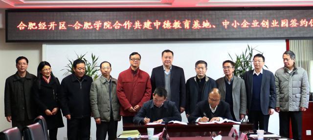 在雙方友好協(xié)商的基礎(chǔ)上,雙方就中德教育示范基地和中德中小企業(yè)創(chuàng)業(yè)園項(xiàng)目達(dá)成一致意見(jiàn),張文兵和楊偉共同簽署了《合作共建中德教育示范基地和中德中小企業(yè)創(chuàng)業(yè)園框架協(xié)議》。協(xié)議旨在落實(shí)李克強(qiáng)總理視察合肥有關(guān)指示精神,服務(wù)經(jīng)開(kāi)區(qū)“調(diào)轉(zhuǎn)促”發(fā)展戰(zhàn)略,按照合肥市政府對(duì)德合作專(zhuān)題會(huì)議紀(jì)要關(guān)于經(jīng)開(kāi)區(qū)要利用合肥學(xué)院等創(chuàng)新資源,“加快建立‘中德中小企業(yè)創(chuàng)業(yè)園’,打造‘大眾創(chuàng)業(yè)、萬(wàn)眾創(chuàng)新’合作示范平臺(tái)以及中德青年交流合作基地”的要求,深化經(jīng)開(kāi)區(qū)、合肥學(xué)院與德國(guó)在科教、經(jīng)貿(mào)、產(chǎn)業(yè)領(lǐng)域的交流合作,通過(guò)多種形式,共同合作推進(jìn)中德教育合作示范基地建設(shè),搭建中德企業(yè)合作創(chuàng)新平臺(tái)。
