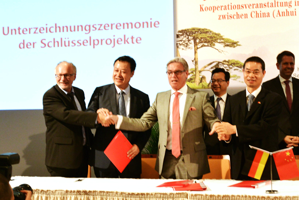 合肥學(xué)院黨委書記蔡敬民教授、埃姆登/里爾應(yīng)用科學(xué)大學(xué)校長蓋爾哈德·克魯伊茲教授、大陸馬牌輪胎事業(yè)部高級(jí)執(zhí)行副總裁博卡·科勒先生代表簽署了上述協(xié)議。安徽省省長特別代表、省政府副秘書長汪瑩純,下薩克森州經(jīng)濟(jì)、勞動(dòng)和交通部部長奧拉弗·利斯、中國駐漢堡總領(lǐng)館總領(lǐng)事孫從彬等見證了協(xié)議簽署。