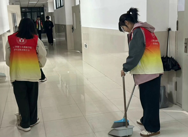 當(dāng)天傍晚,志愿者們攜帶衛(wèi)生工具,進(jìn)入教學(xué)樓進(jìn)行清掃。經(jīng)過志愿者的共同努力,教學(xué)樓各樓層煥然一新,校園環(huán)境更加整潔。