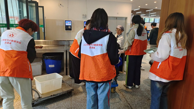活動(dòng)當(dāng)天,人工智能與大數(shù)據(jù)學(xué)院的志愿者們不僅協(xié)助食堂工作人員維持秩序、清理餐桌和打掃地面,還幫助食堂阿姨收拾碗筷,讓人感受到志愿者的愛心與溫暖。