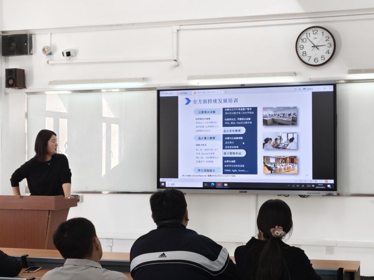 在宣講過程中,海隆軟件(昆山)有限公司的HR向在場(chǎng)的求職學(xué)生全方位展示了公司的企業(yè)文化、發(fā)展歷程、業(yè)務(wù)布局、雄厚的技術(shù)實(shí)力以及明晰的未來發(fā)展規(guī)劃??紤]到畢業(yè)生即將踏入社會(huì),公司著重對(duì)招聘崗位、薪資福利體系、職業(yè)晉升通道等關(guān)鍵內(nèi)容進(jìn)行了詳細(xì)解讀,讓同學(xué)們收獲頗豐。