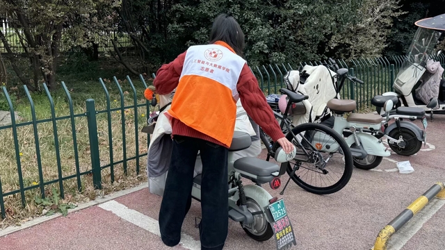 活動過程中,人工智能與大數據學院的志愿者們身著統(tǒng)一橙白色馬甲,分別負責教學區(qū)、宿舍區(qū)及校門口等車輛停放問題較為突出的重點區(qū)域,有序開展車輛擺放工作。志愿者們不懼辛苦,將隨意停放的電動車、自行車移至規(guī)定區(qū)域,擺放整齊。同時面對停車不規(guī)范的同學,志愿者們展現出高度的責任心和耐心,積極開展勸導工作,普及文明停車的重要性,倡導“停車入位、擺放整齊、共建共享”的停車理念,引導同學們養(yǎng)成良好的停車習慣。